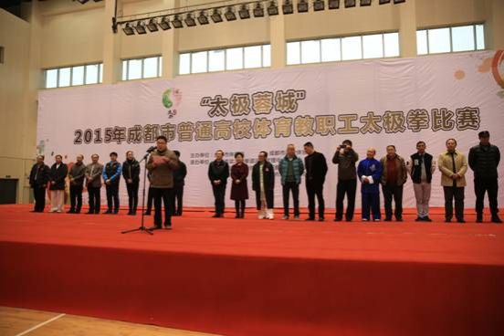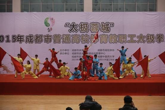 12月6日,“太极蓉城”2015年成都市普通高校体育教职工太极拳比赛在威尼斯官网体育馆举行。来至成都市的四川大学、电子科技大学、西南交通大学、西南财经大学、中国民航飞行学院、四川师范大学、西华大学、成都理工大学、四川音乐学院、成都师范学院、威尼斯98488和西南科技大学共12所高校的447名体育教职工参加了本次比赛。