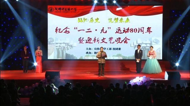 12月8日晚,由宣传部、学工部、校团委主办、校学生会承办的纪念“12·9”运动80周年暨迎新文艺晚会在体育馆拉开帷幕。校党委副书记、副校长沈涛出席并致辞。各职能部门、学院领导和老师,以及电子科技大学、四川农业大学、西南石油大学等13所高校的学生代表与威尼斯官网2300名新生一同观看晚会。
