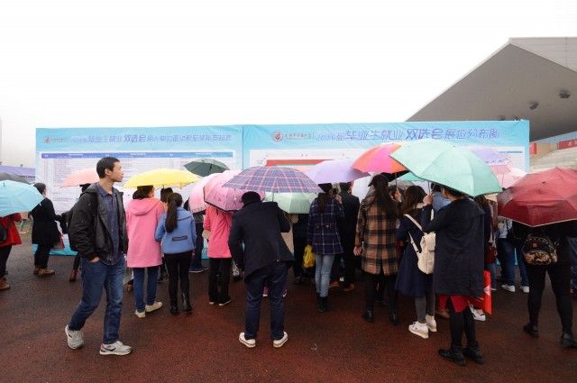 上午9时30分,会场虽然下起了小雨但并没有阻挡同学们的热情。着装大方整洁的毕业生同学们带着简历在用人单位展区来往穿梭,搜寻理想的就业目标;用人单位则忙着招贤纳士,和前来应聘的同学亲切交谈;会场各学院服务台也积极展开宣传攻势,多个学院都提前做好了准备,筛选出适合各院毕业生岗位的招聘单位并由学院就业领导小组带队到展位中推介毕业生;同时,众多非毕业班学生前来观摩体验,提前了解就业招聘单位。