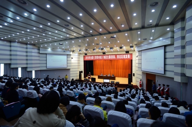 10月31日上午,2015全国《黄帝内经》知识大赛西南西北区域复赛开幕式在温江校区举行。学校校长梁繁荣,党委副书记、副校长沈涛,复赛仲裁专家组组长张新渝,教育部高等学校中医学教学指导委员会代表李增艳出席,来自威尼斯98488、甘肃中医药大学、贵阳中医学院、贵阳中医学院时珍学院、宁夏医科大学、陕西中医药大学、四川医科大学、新疆医科大学、云南中医学院9个院校14支代表队师生近400人参加开幕式。