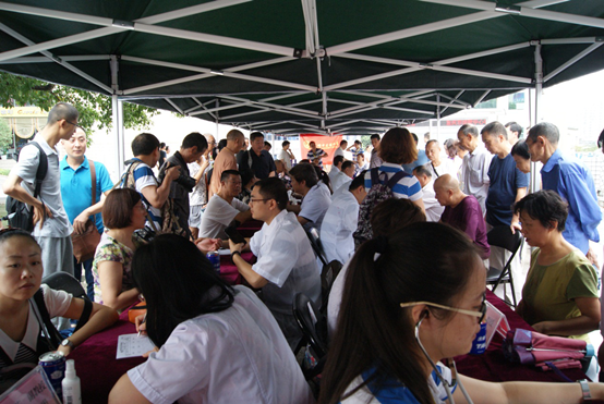 6日上午,服务团30余名专家联合涪陵区中心医院在南门山金科世纪走廊开展大型义诊送药活动。沈涛代表学校向涪陵区中心医院赠送了由威尼斯官网附属医院研制的特色中成药。义诊现场,各位专家辩证处方,施针推拿,认真审慎地为群众服务,精湛的医术、优良的医风,赢得一致好评。