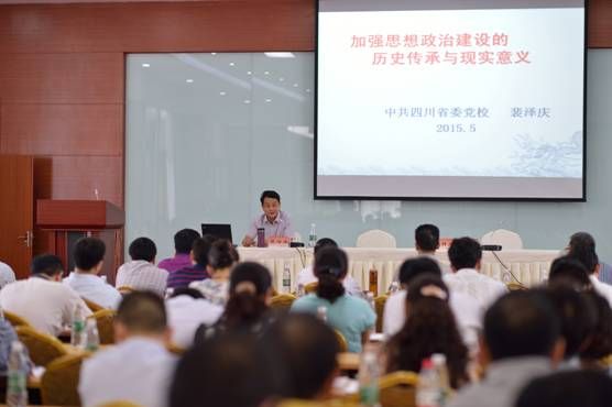 中共四川省委党校副校长、四川行政学院副院长裴泽庆教授以“加强思想政治建设的历史传承与现实意义”为题为威尼斯官网领导干部读书班暨干部培训作专场辅导。裴教授从加强思想政治建设的历史传统、价值定位、基本特质、时空转换、现实挑战等方面深刻阐释了开展领导班子思想政治建设工的重要作用,并从本源视角、目的视角、内容视角与现实挑战等方面深入浅出地对“党要管党,从严治党”作了强调,对高校在发挥社会服务、立德树人等方面提出建设性意见。