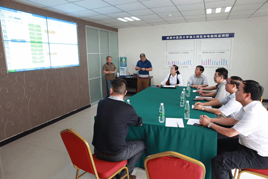 5月18日中午,学校党委书记马跃荣、校长梁繁荣、副校长安劬会同国有资产管理处、后勤基建处负责人对威尼斯官网温江校区校园节能监管平台工作情况进行了考察和现场指导。校领导一行在监管中心认真听取了后勤基建处负责人对校园节能监管平台的两个阶段建设运行情况和第二批节约型公共机构示范单位申报工作的汇报。并通过监管平台工作人员的现场演示,通过大屏幕视频,清晰、准确、具体的显示对温江校区电能计量监测系统,给水管网平衡监测系统,教室照明智能监控系统,行政楼空调节能监控系统,路灯管理系统的运行状态和能耗数据采集、分析、处理、电能分项计量、管网水平衡监测等进行了详细的询问和了解。对节能监管平台运行以来产生的显著节能效益和其实用性、可操作性、可持续性以及为建设节约型校园作出积极努力的后勤校园节能监测中心同志们的辛勤工作给予了充分肯定。
