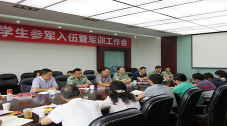 延建明要求各相关单位、各学院要高度重视,集思广益,密切配合,加强学生参军入伍的宣传动员工作,积极为2015年军训工作出谋划策,加强军训工作领导和组织,落实军训保障和服务,把握关键环节,加强安全管理,确保2015年学生军训及参军入伍工作安全顺利开展。