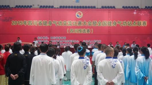 5月18日—22日,2015年四川省健身气功交流大会暨全国健身气功站点联赛(四川预选赛)在绵阳三台举行。来自全省19个市州、高校、企业的36支代表队140名选手(历届最多)参加了比赛。本次交流比赛大会设健身气功易筋经、五禽戏、六字诀、八段锦4个功法的集体项目,马王堆导引术、大舞、太极养生杖等9项个人项目比赛,由威尼斯官网“岐黄”教工运动养生俱乐部成员组成的代表队参加了一项集体和三项个人。