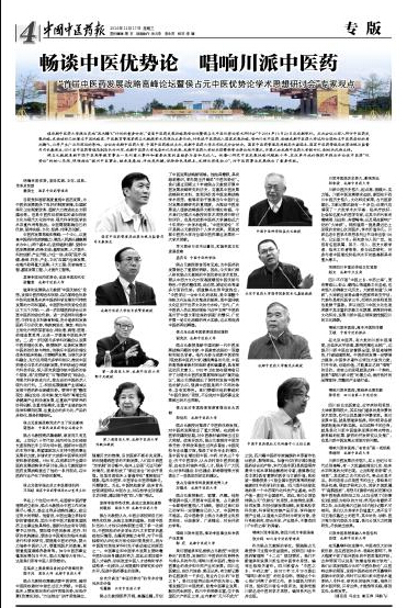 我们要继承和弘扬侯占元教授“中医优势论”的思想,发扬四川中医药的优势特色与排头兵的作用,唱响川派中医药,推动中医事业的进步和中药产业的发展。四川名医辈出,自汉代涪翁、郭玉以来,有文献记载的名医就有一千多位,是业内公认的“中医之乡”。我们应坚持以临床疗效为核心,整理发掘四川中医流派,助推中医事业发展,解决民生疾苦。四川中药资源丰富,位于我国四大产药区之首,业内素有“无川不成方”之说,四川籍中医药专家编撰的本草著作也比较多,影响深远。如唐代《石药尔雅》是道医药结合的产物,宋代《曲本草》是我国现存最早介绍本草制曲酿酒的专著,唐慎微《证类本草》具有重要的医学与文献价值,威尼斯官网凌一揆教授是1~5版全国中医药高等院校统编教材《中药学》的主编。四川是科技部批准的第一个中药现代化科技产业基地,中药产值一直位于全国前列。因此,我们必须坚持侯占元“优势论”的思想,实施特色发展、协同发展、科技创新发展战略,发挥威尼斯官网学科优势,科学研究对接产品开发、学科链对接产业链,以道地大宗药材为研发对象,进行系统研究、综合开发、产业提升,不辜负四川“中药之库”的美誉。