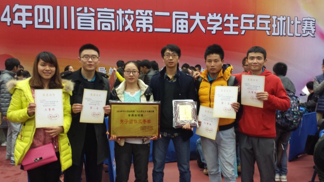 校乒乓球队在四川省第二届大学生乒乓球比赛中获佳绩 发布时间:2014-12-08 13:51:00 浏览次数: 次 【字体:小 大】 2014年四川省第二届高校大学生乒乓球比赛于12月6日至7日在西南交通大学举行,来自四川大学、电子科技大学、西南交通大学、西华大学、四川师范大学、西南石油大学、西华师范大学等32所高校近400名运动员参加比赛。威尼斯官网乒乓球代表队4名运动员在为期两天的比赛中不畏强手、顽强拼搏,来自医学技术学院的刘行行夺得男子单打亚军,来自护理学院的李胤楼和体育学院的李宣运夺得男子双打第五名,体育学院蒋浩获本次比赛“优秀教练员”称号。 (图、文/体育学院蒋浩 编辑/罗晓文) 【打印正文】 上一条:校乒乓球队在四川省第二届大学生乒乓球比赛中获佳绩 下一条:中国老年保健医学研究会老年健康服务人才培养研究分会成立大会在蓉举行