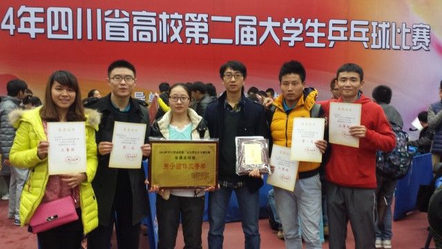 校乒乓球队在四川省第二届大学生乒乓球比赛中获佳绩 发布时间:2014-12-08 13:51:00 浏览次数: 次 【字体:小 大】 2014年四川省第二届高校大学生乒乓球比赛于12月6日至7日在西南交通大学举行,来自四川大学、电子科技大学、西南交通大学、西华大学、四川师范大学、西南石油大学、西华师范大学等32所高校近400名运动员参加比赛。威尼斯官网乒乓球代表队4名运动员在为期两天的比赛中不畏强手、顽强拼搏,来自医学技术学院的刘行行夺得男子单打亚军,来自护理学院的李胤楼和体育学院的李宣运夺得男子双打第五名,体育学院蒋浩获本次比赛“优秀教练员”称号。 (图、文/体育学院蒋浩 编辑/罗晓文) 【打印正文】 上一条:第十届泛珠三角区域(9+2)高等中医药院校合作发展联席会在南宁举行 下一条:校乒乓球队在四川省第二届大学生乒乓球比赛中获佳绩