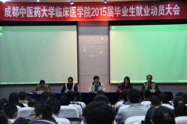 段俊国作动员报告,与同学们分享自己的职业生涯之路和个人成长经历,鼓励临床医学院广大毕业生一定要热爱中医药事业,把自己的职业理想和人民的健康事业紧密相连,不管以后是在临床岗位还是在医疗相关岗位,都要尽职尽责、不辱使命。段俊国对即将开启求职之路和职业生涯的毕业生提出三点要求。一是要准备做好角色的转换。虽然还有半年才正式毕业,但他希望广大毕业生早日做好由学生到医生,由学校人到社会人的角色转换准备,只有这样,才能更好地适应新的岗位。二是要拓宽自己的就业领域,重视基层的发展机会。他希望广大同学结合自身职业规划和实际情况,拓宽就业领域,除了临床医疗工作岗位,也可以关注和选择健康产业相关的工作,在这些领域也可以做出很好的成绩。段俊国指出,基层医疗单位对人才的需求比大城市大,随着国家医改政策的调整,在基层医院的发展机会将增多,很多二线城市近年发展也很快,医疗卫生事业正是急需人才之时,他希望大家认真把握到基层医疗单位的机会。三是要在以后的工作中继续学习。段俊国对同学们说,不管是本科生还是研究生,毕业工作后要想继续保持优秀,自己要发展更快更好,就必须在工作中不断学习,只有不断学习,才能让你永远立于行业潮头。今年学校的双选会参展单位很多,对医学生的需求量也很大,他代表学院祝愿所有毕业生都能在双选会中找到自己满意的岗位。