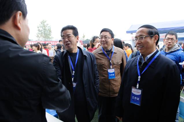 校领导马跃荣、梁繁荣、沈涛、安劬、延建明、徐廉等早早来到会场,在学校办公室、学生处等部门相关人员陪同下巡视了会场工作。校领导分别走访了各学院展台,仔细查阅了各学院的展示资料,详细询问各学院“双选会”工作准备、毕业生基本信息及就业形势等,和毕业生们亲切交谈,询问他们对就业的思考、求职经历,关心他们遇到的困难等。走访中,马跃荣强调,各学院要高度重视就业引导与服务,把就业准备工作作为党政“一把手工程”;各学院要结合自身特色和优势推动就业工作,将学科的“专项、强势”转换成就业的优势;各学院“不等、不靠”,要主动拓展就业渠道,加强与用人单位的跟踪联系,建立合作长效机制,形成毕业生就业良性循环。马跃荣一行还亲切慰问了用人单位代表,感谢他们长期以来对学校人才培养工作的信任与支持,并祝愿他们选拔到满意的人才,满载而归。