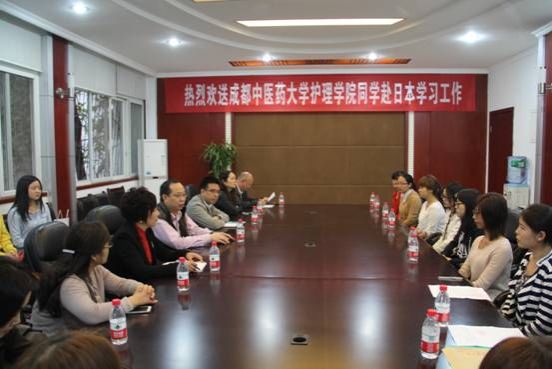 10月11日,护理学院在十二桥校区举行毕业生赴日就业欢送会。国际合作与交流处处长姚洪武,护理学院院长张先庚、院党委书记刘世云、院党委副书记孔静、副院长高静出席欢送会,护理学院副院长侯朝铭主持会议,本批赴日的13名毕业生及其辅导员、家长代表和日语项目在读学生代表共计30余人参加会议。