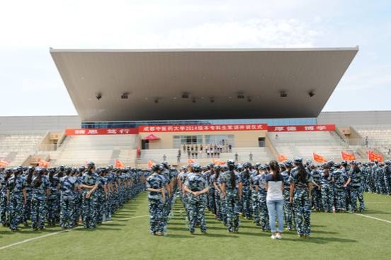 9月12日下午14时,2014级本专科学生军训开训仪式在温江校区体育运动场举行。学校党委书记马跃荣、校长梁繁荣、纪委书记、学生军训工作领导小组组长延建明、学校相关部门及各参训学院领导出席开训仪式。