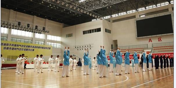 9月5日上午,由国家体育总局健身气功管理中心和成都市体育局主办、成都市武术跆拳道运动管理中心承办、成都市武术运动协会协办的“2014年全国开展百城和千村健身气功交流展示活动成都市启动仪式暨成都市健身气功交流展示比赛”在威尼斯官网体育馆举行。来自成都市各区市县的31支代表队,近400名运动员分别参加了集体和个人易筋经、五禽戏、六字诀、八段锦、大舞五种功法的展示。
