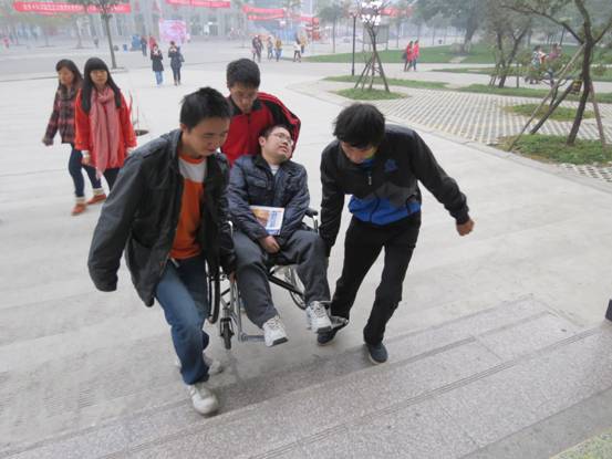 2011年,备受社会关注的“轮椅兄弟”熊仕华考进威尼斯官网,成为管理学院医疗保险专业2011级学生,学校考虑其身体状况和家庭经济特殊情况,为他开通了各种绿色通道,并开展了一系列帮扶工作,管理学院更是为熊仕华及其陪护家属进行妥善安排,为他们营造温暖如家的学习生活环境。医疗保险专业2011级的同学们更似兄弟姐妹,男生们总是早早到寝室接熊仕华去教学楼,不让他落下一节课,尤其是抬着轮椅上下教学楼,他们默默无闻、从不叫苦,几年如一日、风雨无阻,成了校园一道独特的风景;女生们也尽力关心帮助照顾熊仕华及其家人的日常生活。同学们把爱化作付出,在付出中凝聚力量,在帮扶熊仕华和身边其他患病同学的过程中感悟着生命,珍惜着来之不易的美好生活。2013年底,医疗保险专业2011级被学校评为“寻找身边雷锋”优秀集体称号。
