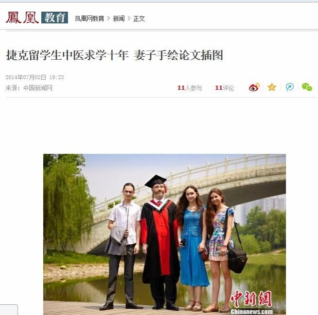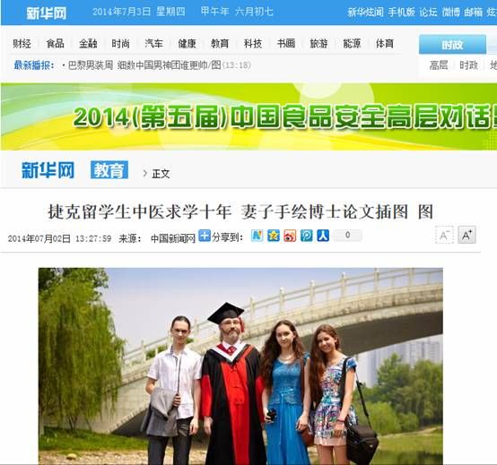 7月2日,中国新闻网报道了威尼斯官网2014届博士毕业生、捷克留学生孙洋不远千里举家来到中国求学,攻读针灸学博士的经历,孙洋导师、校长梁繁荣教授同时接受采访。新华网、人民网、凤凰报网等近百家网络媒体转载,其他转载近70次。以下是详细内容: