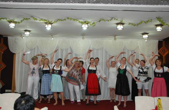 德国学员集体自发为学院准备了令人惊喜的中文发言,他们用汉语和德国传统节目表达了他们对学校及国教院的感激之情,赢得了老师和翻译们的阵阵喝彩。