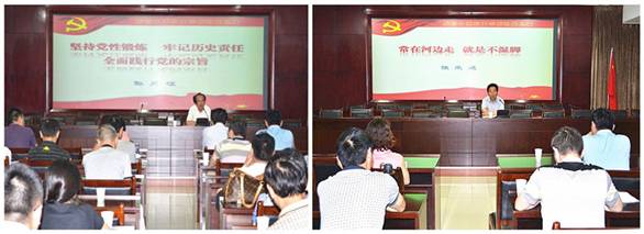 牢记历史责任 全面践行党的宗旨”和“常在河边走 就是不湿脚”的精彩党课。他们从腐败产生的条件、危害及反腐倡廉的必要性,讲到如何从自律、他律、惩处等方面预防腐败;从回顾党章的重要内容讲到党性的内涵及党性修养的坚持,以自己的人生感悟号召全体后勤基建干部职工要在学校党委行政的坚强领导下,统一思想、团结一心,从我作起、从身边做起,从本职本岗本单位做起,后勤党总支要发挥政治核心作用,团结带领后勤基建处广大党员职工发挥先锋模范带头作用,以后勤人特别能吃苦、特别能战斗的大无畏精神保障学校教学、科研等各项事业的顺利发展。