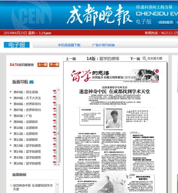 6月22日,《成都晚报》关注留学生在成都学习生活,专版采访报道威尼斯官网外籍学生阿贝尔留学感悟,以下是专版详细情况: