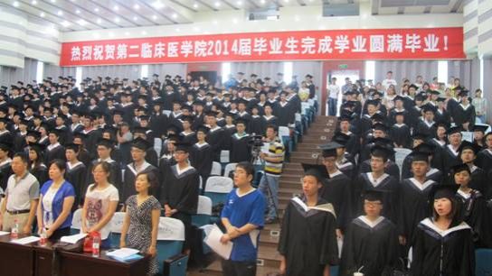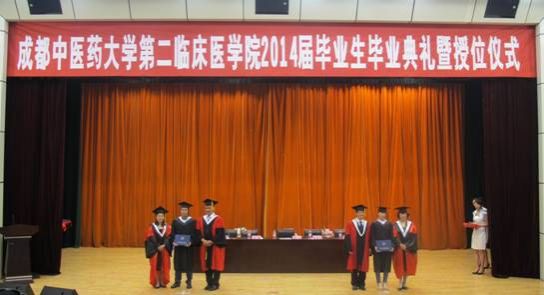 6月20日,第二临床医学院2014届毕业生毕业典礼暨授位仪式在温江校区举行。学校副校长安劬、学院领导陆华、罗晓红、常德贵、尹巧芝和学院党政办、学生科、教学科主要负责人,毕业班辅导员、班导师以及2014届全体本专科毕业生近400人出席典礼。学院党委副书记彭晓英主持典礼。