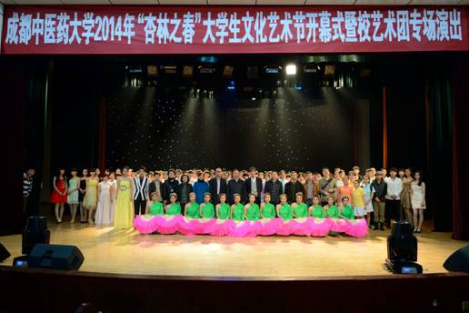 3月26日,学校2014年“杏林之春”大学生文化艺术节开幕式暨校大学生艺术团专场演出在百会堂演播大厅举行。副校长刘旭光出席开幕式。学生处、校团委等部门负责人,各学院学生工作分管书记,学生科长,分团委书记,辅导员老师和400名学生代表参加开幕式。