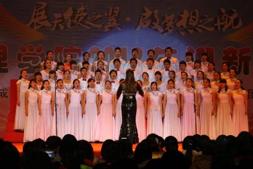 学院合唱队带来的富有民族特色的歌曲拉开了晚会的序幕,欢乐的歌舞剧、行云流水般的乐器演奏、梦幻的舞台秀、热情洋溢的舞蹈、诙谐幽默的双簧表演……彰显了大学生活力四射的青春和充满希望、拼搏进取的风貌。