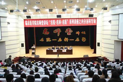 12月11日下午,临床医学院 “名师堂”讲坛之“名院-名科-名医”系列讲座在百会堂演播大厅开讲。首场讲座为内分泌科专场,附属医院内分泌科的五位嘉宾亓鲁光教授,谢春光教授,陈秋教授,岳仁宋教授,张新霞副教授依次做了精彩的学术报告。讲座得到了师生的热烈欢迎,百会堂座无虚席,400多名师生参加了学术讲座。