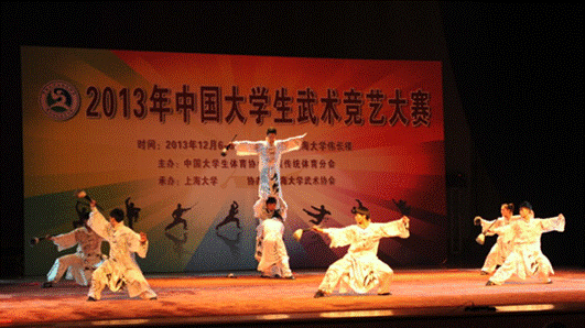 由中国大学生体育协会民族传统体育分会主办、上海大学承办的2013年中国大学生武术“竞艺”大赛日前在上海大学圆满结束。来自复旦大学、浙江大学、华东理工大学、西北师范大学、天津理工大学、北京体育大学、华中科技大学、集美大学、威尼斯98488等全国十七所高校的200多名运动员参加了比赛。经过激烈的预赛和决赛,威尼斯官网武术队参赛的节目《墨功》荣获铜奖。