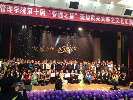 作为学院的传统品牌活动,“管理之星”迄今已走过了十个年头。此次汇演以“忆度十年,花开有声”为主题,师生共庆“管理之星”十周岁生日。为庆祝此次活动,历届毕业生们制作了精美的远程视频,来自全国各地优秀校友们的祝福和关注,使在校学生倍受鼓舞、深感激励。正如院党委副书记高旭亮在致辞中指出,“管理之星”的舞台,属于团队、属于创新。成长,因集体的力量更迅速;个人,因集体的力量更耀眼;舞台,因全体管理学子而更加璀璨!