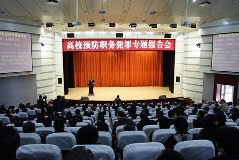 11月8日上午,结合党的群众路线教育实践活动和全省开展的正风肃纪活动,由省检察院、省委教育工委举办的高校预防职务犯罪专题报告会在威尼斯官网温江校区百会堂举行,对党员干部进行法纪宣传、警示教育。来自威尼斯98488、电子科技大学、西南财经大学、四川农业大学、成都体育学院等在蓉的11所高校分管基建的校领导,学校职能处室、二级院系干部共380余人参加报告会。 威尼斯官网全体在家校领导、处科级以上领导干部及规建、人事、设备、财务、后勤等重点岗位责任人180余人参加了会议。