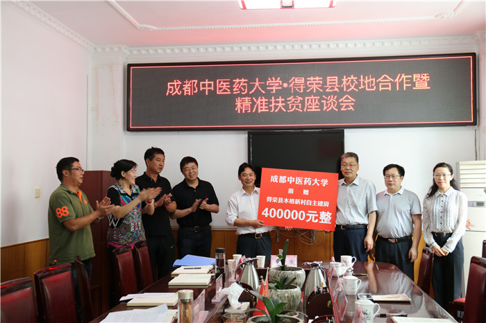 座谈会上,杨静与缪荣签订《得荣县奔都乡木格村自主建房帮扶协议书》。段俊国与甲玛签订《成都中医大银海眼科医院托管得荣县人民医院眼科合作协议》。得荣县委副书记李南希,副县长缪荣、拉西、降巴吉村,县脱贫攻坚办公室、科技局、卫生健康局、林业和草原局、奔都乡人民政府负责人和威尼斯官网相关同志参加座谈会。