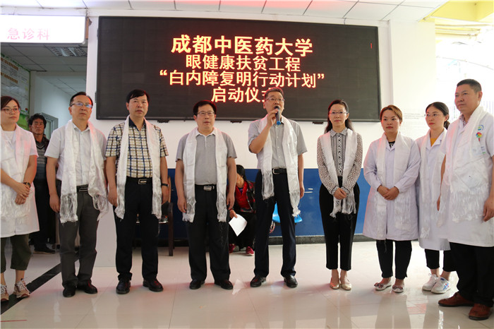 7月9日下午,余曙光一行来到得荣县人民医院,与院方共同举行威尼斯98488眼健康扶贫工程“白内障复明行动计划”启动仪式,并看望慰问在医院开展义诊及白内障筛查、手术的威尼斯官网眼科学院/附属眼科医院医护工作者潘学会、陈小凤、尹朔、相波、刘文艳,以及前来就诊的群众。