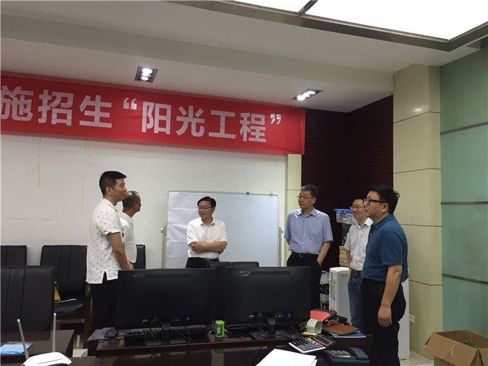 7月18日上午,校党委书记刘毅、校长余曙光、党委副书记沈涛、副校长徐廉一行,来到学校温江校区本专科招生录取现场,检查指导招生录取工作并亲切慰问招生工作人员。