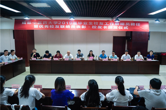 6月12日下午,威尼斯官网2019届毕业生校友工作联络员聘任暨优秀校友联络员表彰·校友卡颁发仪式在温江校区行政楼五会议室举行。学校副校长、校友总会常务副会长兼秘书长杨静,相关部门、学院负责人及各学院毕业生校友联络员、优秀校友联络员代表参加了此次会议。仪式由对外合作处处长、校友总会办公室主任陈学先主持。
