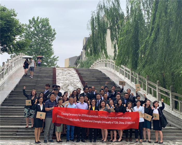 5月27日,威尼斯官网与泰国卫生部泰医和替代医学司合作举办的“针灸培训班”结业典礼在温江校区图书馆多功能培训室举行。此次培训,共计40名学员,培训时长为三个月。泰国卫生部泰医和替代医学司泰中医药研究院院长安查丽(Dr.Anchalee Chuthaputti),党委副书记沈涛,针灸推拿学院副教授陈洪沛及国际合作与交流处和针灸推拿学院相关领导参加了典礼。