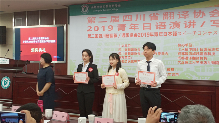 5月18日,在这个初夏明媚的日子,第二届四川省翻译协会小语种2019青年日语演讲、写作比赛在成都纺织高等专科学校举行。经过激烈的角逐,外语学院2017级日语专业陈洁和杜玉莲分别获得演讲组三等奖和优秀奖,2016级日语专业丁敏和2017级日语专业刘莹获得写作组二等奖。外语学院共30名同学观摩了本次比赛。