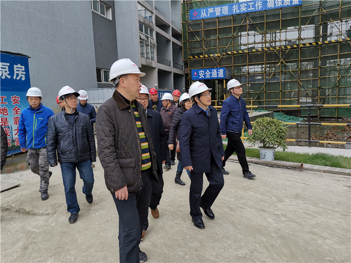 随后,刘毅一行来到在建的实验教学中心工地进行安全检查工作,在施工现场,刘毅书记详细询问了工程建设进度、建设人员情况、验收时间、各楼层使用面积及功能分布,观看了建成后教室效果图,了解当前建设存在的困难和问题,仔细查看了工程质量、安全生产措施等情况并召开现场工作会。刘毅代表学校对辛勤参与项目建设的各位同志表示感谢,要求施工单位提高管理水平,统筹兼顾,提高安全意识,重视安全问题,杜绝暴力施工,要树立高质量标准,严把质量关,确保工程按期保质完成。刘毅要求后勤基建处及时总结工程中成功的管理经验,逐步建立起工程质量诚信档案,不断提高和保障学校工程建设水平,助推学校“双一流”建设。