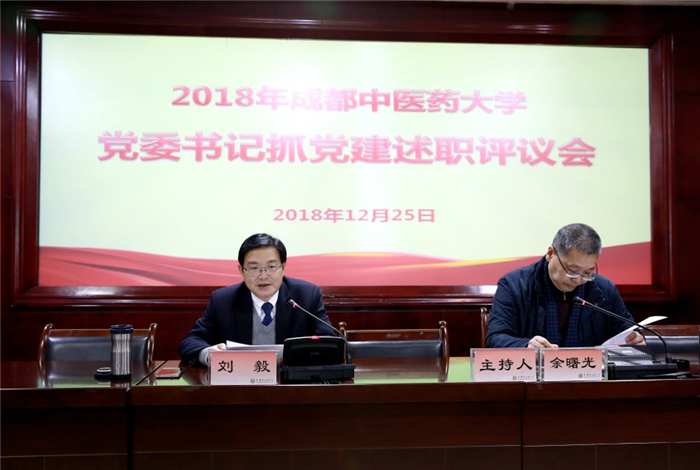 12月25日下午,学校在温江校区行政楼召开党委书记抓党建述职评议考核会,党委书记刘毅作2018年度党委书记抓党建述职报告。校领导班子成员、中层党员领导干部、党支部书记代表、师生党员代表共150人参加会议,对刘毅抓党建按照“好、较好、一般、差”四个等级进行现场评议,评议为“好”的达到98%。会议由校长余曙光主持。