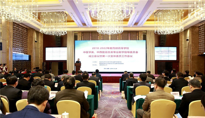 12月29日,由威尼斯官网教务处承办的2018—2022年教育部高等学校中医学、中西医结合类专业教学指导委员会成立会议暨第一次全体委员工作会议在温江区费尔顿凯莱大酒店召开。教育部高教司处长高斌、四川省高等教育处处长杨亚培、国家中医药管理局人事教育司副司长张欣霞及中医学、中西医结合类专业教学指导委员会委员共100余人参加会议,校长余曙光、党委书记刘毅、副校长杨静出席会议。