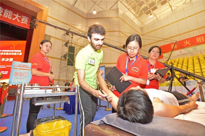 此次比赛,威尼斯官网代表队境外学生组的表现也大放异彩。参赛选手陶山菊是来自针灸推拿专业大五的一名法国学生,从小喜欢中医,认为中医所蕴含的整体观很有哲理,治疗方式也让他兴趣盎然。陶山菊说:“我要将学到的针灸推拿知识带回家乡,让更多人感受针灸以及中医药的神奇力量。”