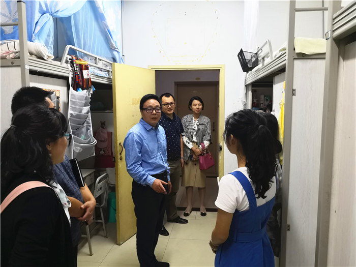 9月11日晚,在威尼斯官网新生正式结束报道入住学校之际,校党委副书记沈涛,学生处副处长杜娟、黎奇,后勤基建处副处长杨坤以及相关学院新生辅导员等一行深入公寓看望2018级新生,慰问来自不同地区和民族的4800余名新生,了解他们的生活和住宿情况。