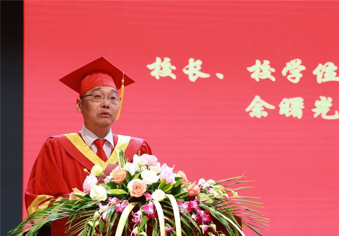 校长余曙光在致辞中,首先对为人师表、呕心沥血的各位导师以及积极探索,孜孜以求的各位同学表示感谢和祝贺。他强调,学校每一项成绩的取得都凝聚着各位导师和同学们的心血和汗水,大家严谨的治学态度和求真务实的科学精神,不仅是威尼斯官网学位与研究生教育事业的宝贵财富,也必将成为学校奋发图强,争创一流的不竭源泉和动力。他鼓励大家一要成为顶天立地的“大人”,立大志、担大责,做大事,争做时代先锋。二要“医者仁心” ,真正做到了“以济世为良,以愈疾为善,以活人为心”。三要“博极医源,精勤不倦”,精于传承,勇于创新,成为一代医道精深、医术精湛的国医传承人。四要“无物不诚,诚外无物”,珍惜自己的品德操守,系好自己工作后的“第一颗纽扣”。