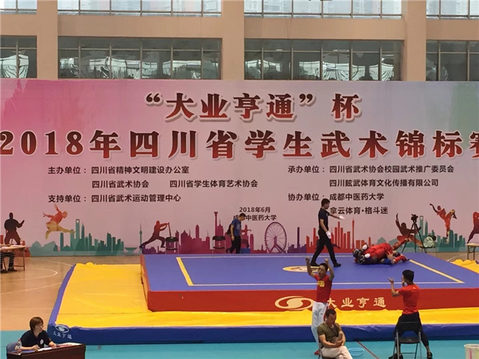 6月23-24日,由四川省精神文明办公室、四川省武术协会与四川省学生体育艺术协会主办,四川省武术协会校园武术推广委员会承办的“大业亨通杯”四川省首届学生武术散打锦标赛在威尼斯官网温江校区体育馆激烈开赛。本次比赛汇集了全省大中小学校的530名散打专业学生,其中,中国民航飞行学院、阿坝师范学院、西昌学院、成都大学、四川民族学院、西南科技大学等高校与威尼斯官网同台竞技。经过两天的激烈对抗,威尼斯官网代表队共斩获8枚金牌,以团体总分140.5分勇夺高校体育专业组团体冠军,并被大会组委会评为体育道德风尚奖与优秀组织奖。