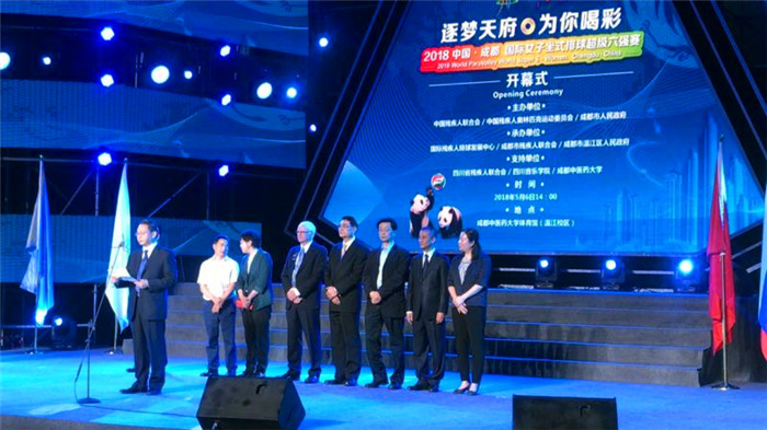 中国残联体育部主任赵素京,世界残疾人排球联合会主席巴瑞・考兹那,成都市政府副市长刘旭光,四川省残联党组书记、理事长毛大付,成都市残联党组书记、理事长何向宗,温江区人民政府副区长邹华,四川音乐学院院长林戈尔,威尼斯官网副校长徐廉等领导和嘉宾出席开幕式。
