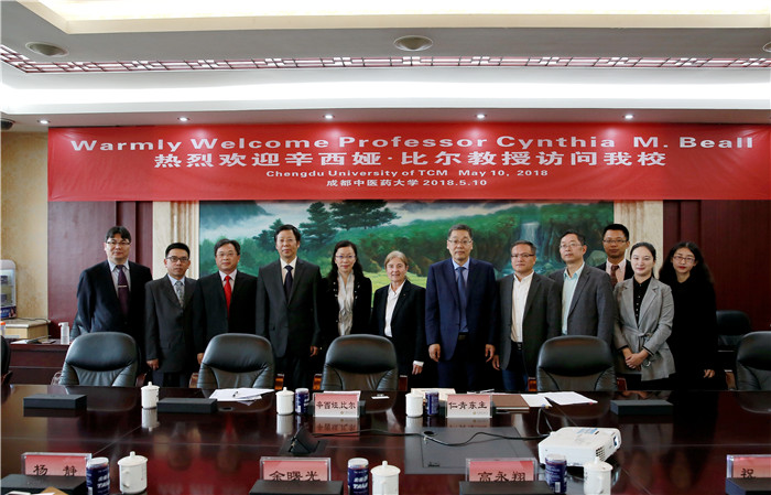 5月10日,应威尼斯官网邀请,美国科学院(NAS, National Academy of Sciences)和美国人文与科学学院(AAAS, American Academy of Arts and Sciences)院士,美国凯斯西储大学杰出教授辛西娅·比尔(Cynthia M. Beall)教授访问威尼斯官网。校长余曙光教授、副校长杨静教授与国合处、人事处、民族医药学院、药学院相关领导等在温江校区会见辛西娅教授。会谈由国际合作与交流处高永翔处长主持。